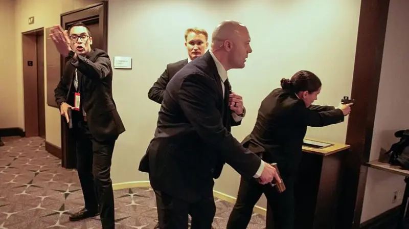 После этого сотрудники Секретной службы вбежали в зал с оружием наготове. По словам корреспондента Би-би-си, агенты кричали: «Стрельба, произошла стрельба!».